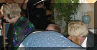 Bestemor foran Erik Werge Bøyesen som leser historien.