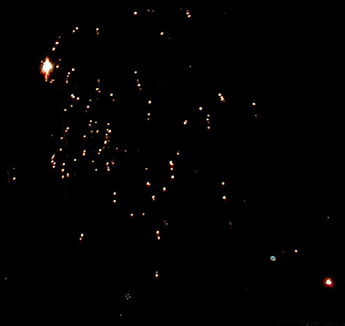 Fyrverkeri er også en del av sortimentet, og slik ser det ut når butikksjefen fyrer av en del.