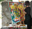 Et blankt lerret var oppspent i foajeen, og alle skulle bidra med sin lille strek.