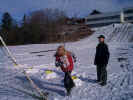Blant aktivitetene vi hadde ute i snøen var en hinderløype hvor vi akte, kastet og løp.