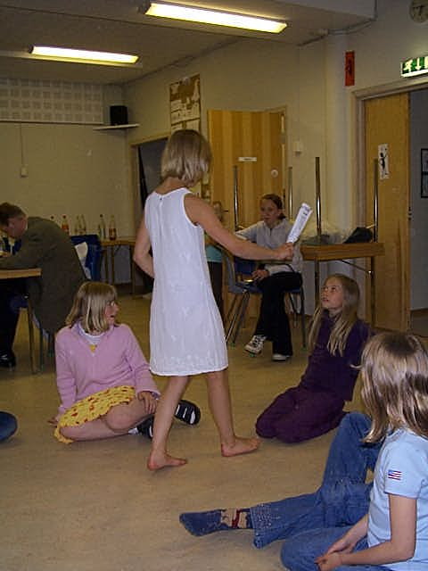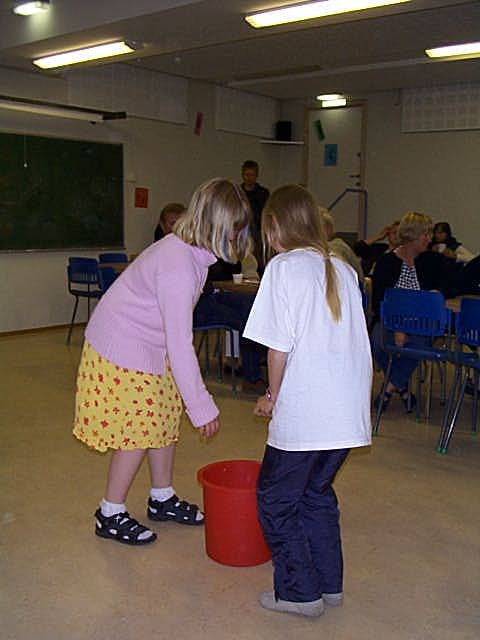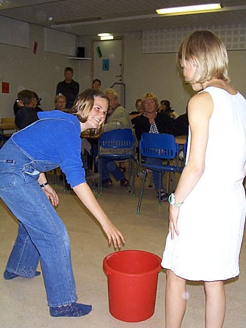 Etter boller og brus var det tid for litt lek. Først var det bøtte (svamp) og klut, deretter avisleken og fattighuset.