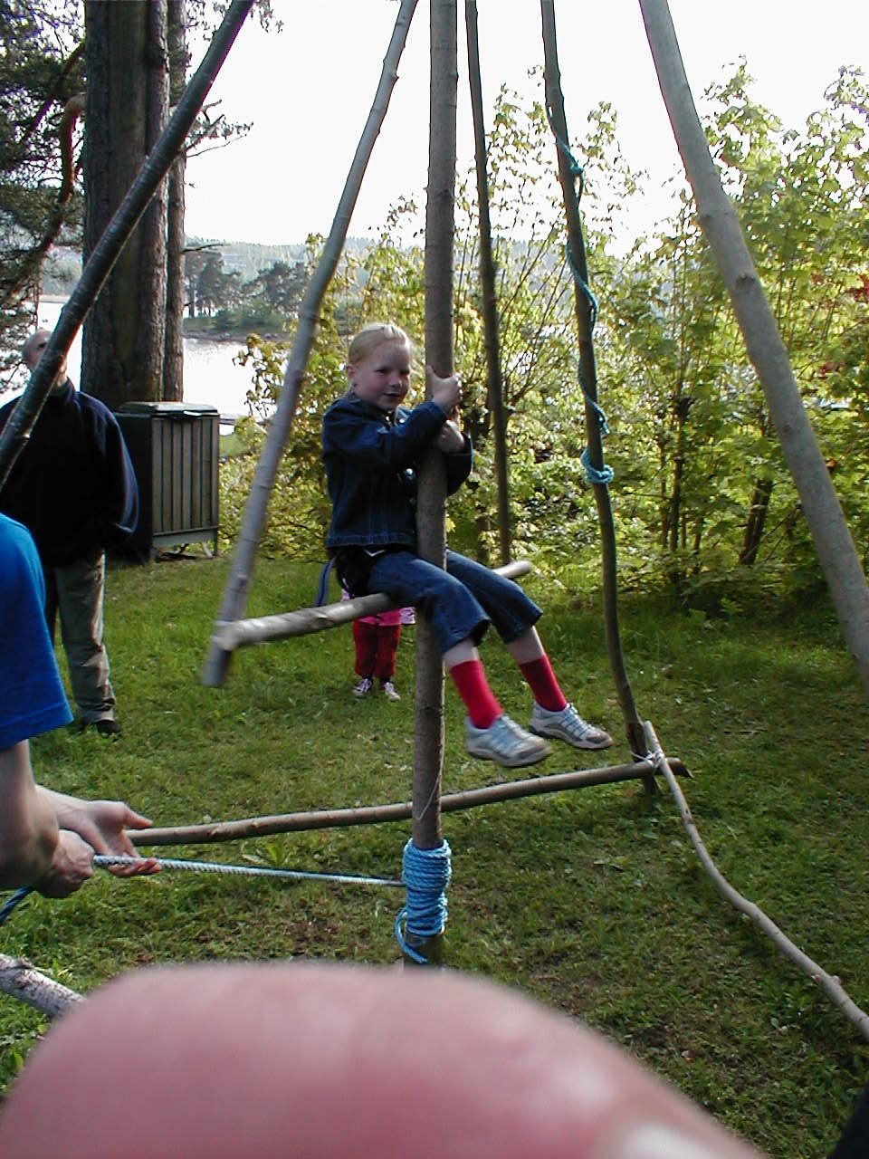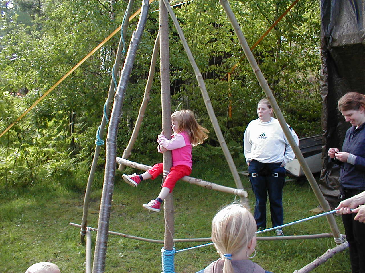 Samtidig med at vi bygde opp klatreveggen, bygde vi også en karusell som var veldig moro for de minste, derfor tar vi og med oss disse bildene på denne siden (kan forstørres).
