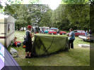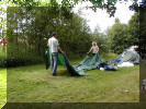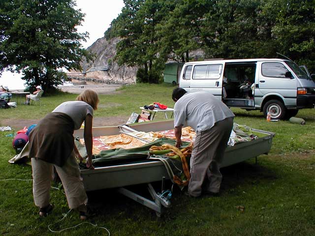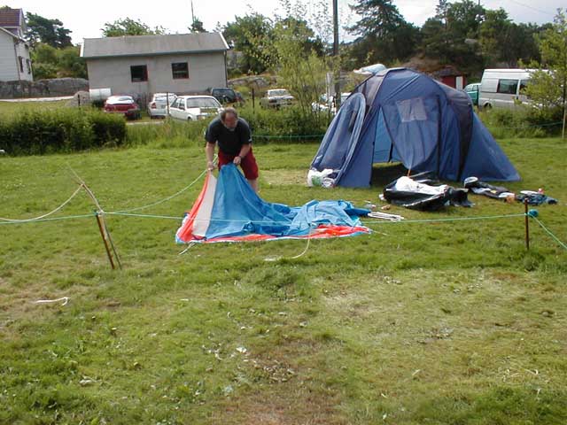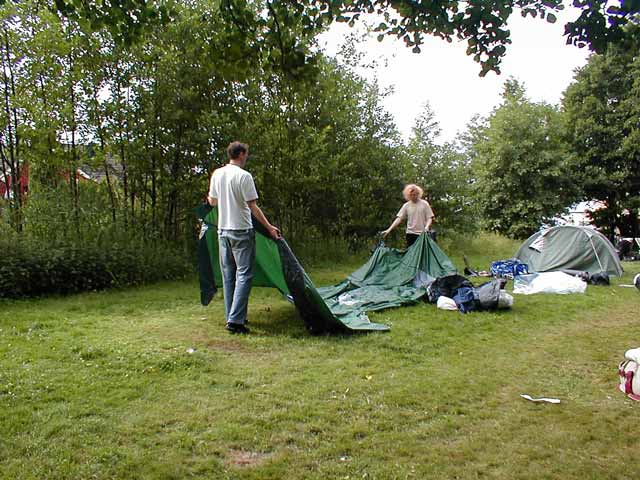 med å ta teltene ned.