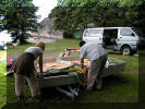 Til slutt måtte også bordet pakkes ned i tilhengeren. |