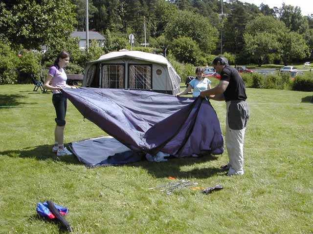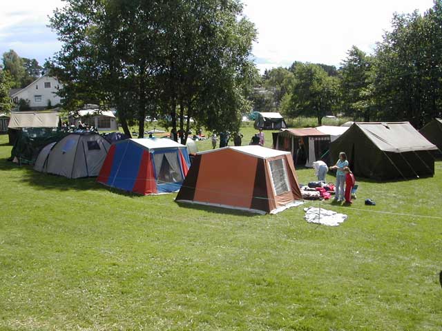 Det var mange telt som skulle opp og alle hjalp hverandre som best de kunne.