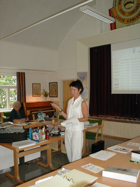En frisk dame, som underholdt med temaet kropp og sjel.