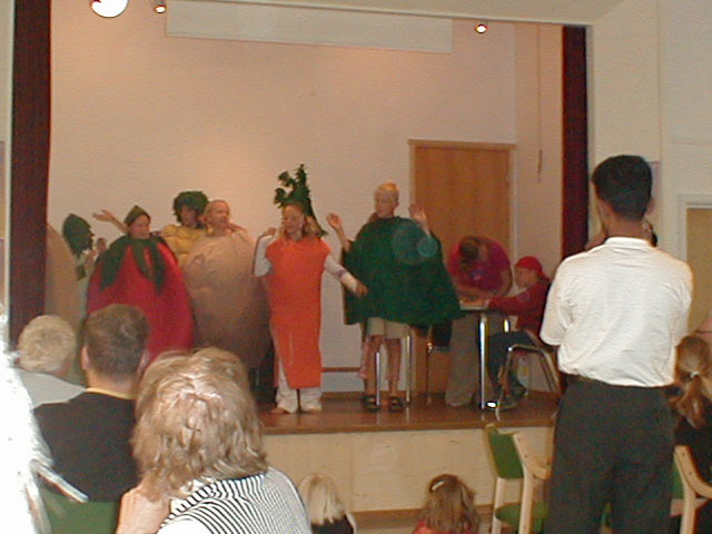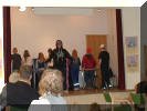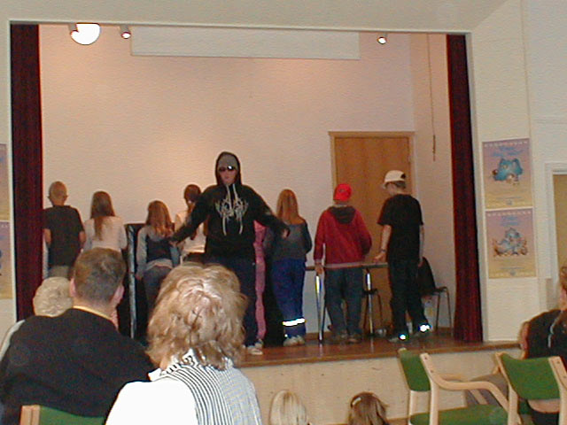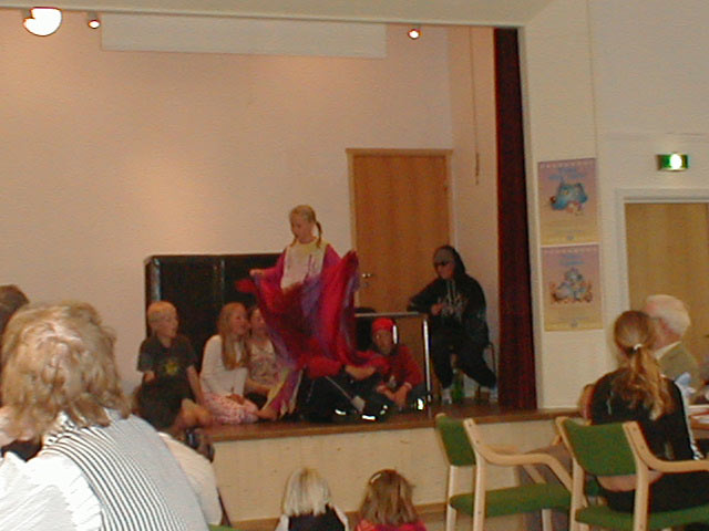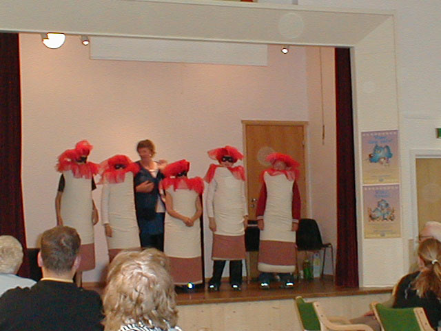En gruppe fra "Skogblomsten" undereholdt med utdrag fra "Martin går på tryne"