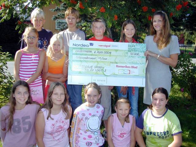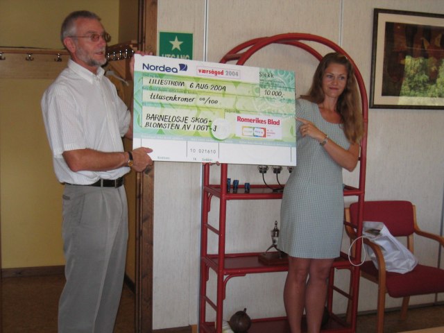Til slutt holdt Ylva Tuft fra sponsoren en redegjørelse om Værsågod-prisen og hvorfor Skogblomsten fikk æren av å motta den for juni. Hun avsluttet med å invitere Skogblomsten til å opptre under Publikumsmessen 04 som er 18.-21. november. Dette er for øvrig nøyaktig de samme dagene de skal ha egen forestilling på Storstua i Lørenskog.