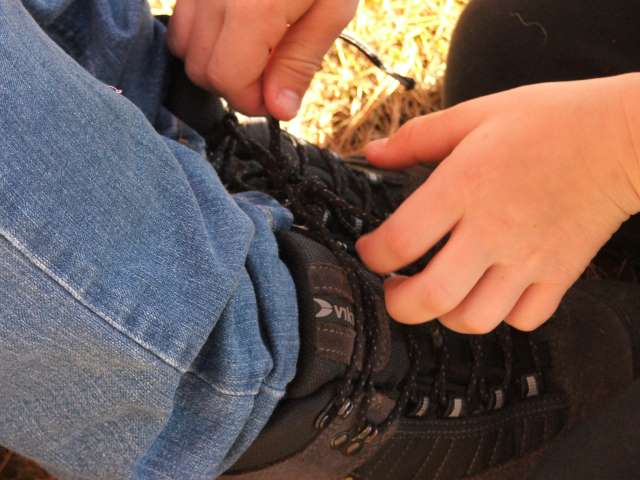 Skolisser er fine å lage knute på, men det er litt dumt når eieren ikke husker på det når hun skal reise seg.