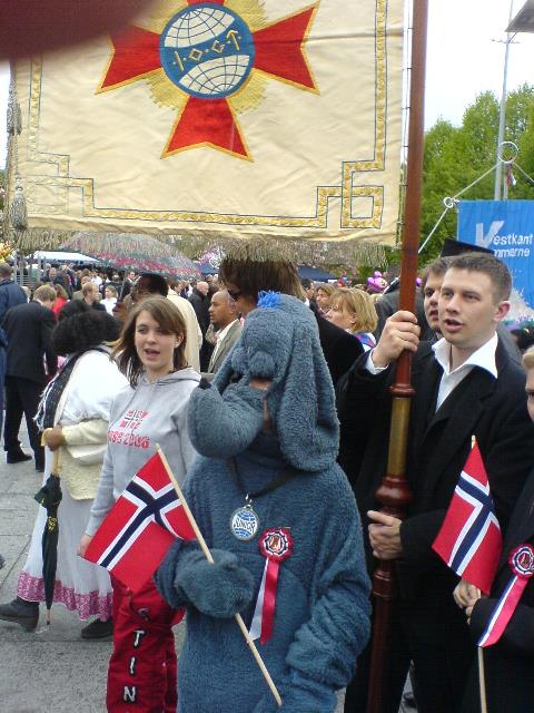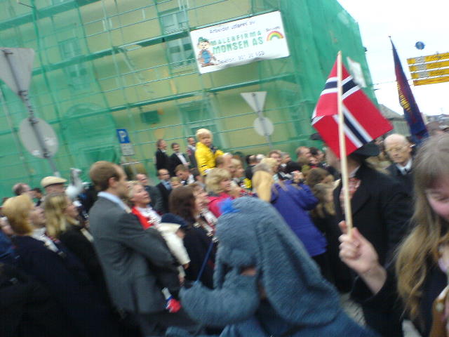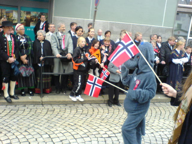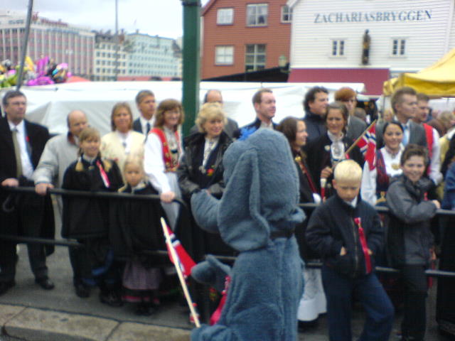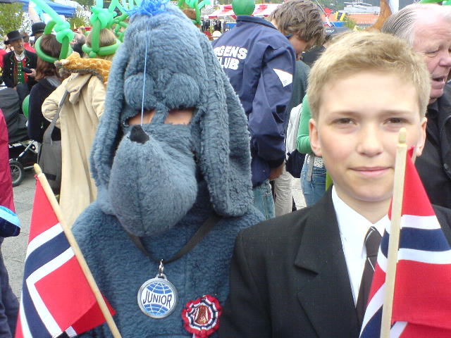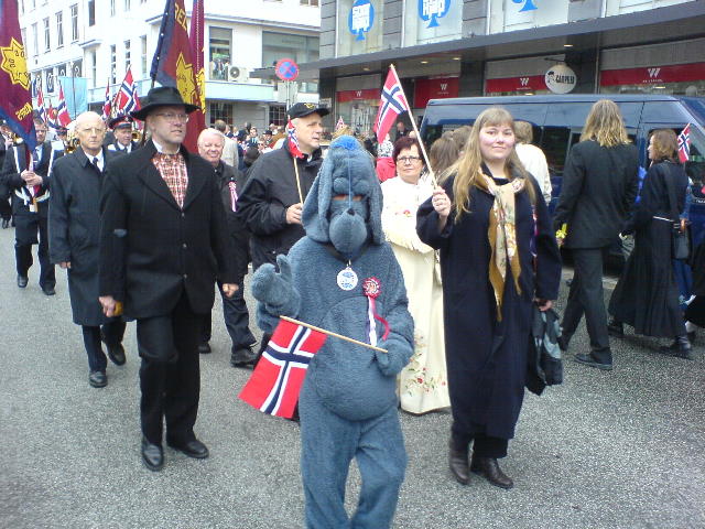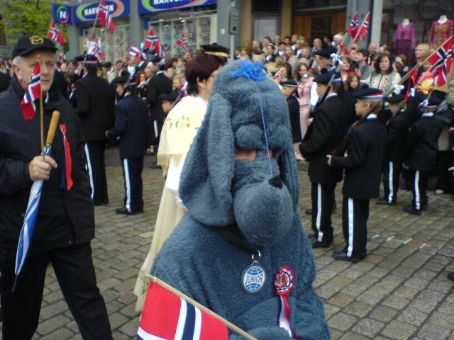 …For andre gang deltok Junior i hovedprosesjonen i Bergen 17. mai. Underveis vanket det smil og muntre tilrop fra ungene langs ruten. Men han var bare sånn passe fornøyd med å bli kalt en blå elefant…